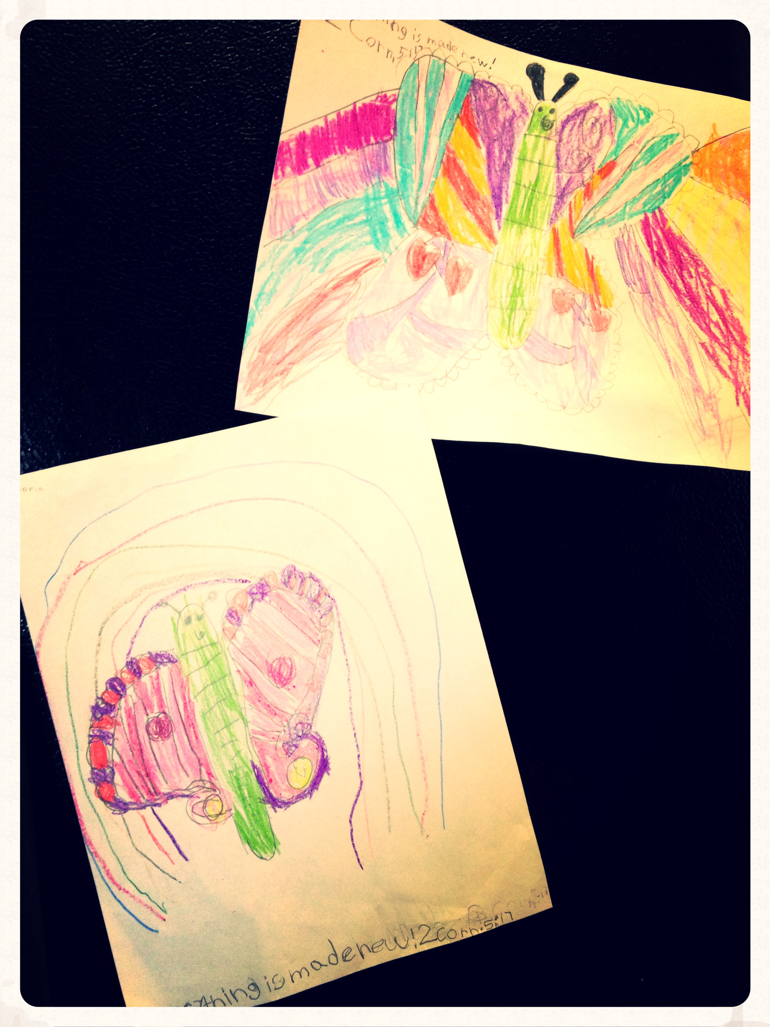 Today our devotion was about “…everything is made new!” We talked about a butterfly and the changes that take place in a cocoon. While the butterfly is in its cocoon, there are changes taking place, when it breaks free, it is a new creature.