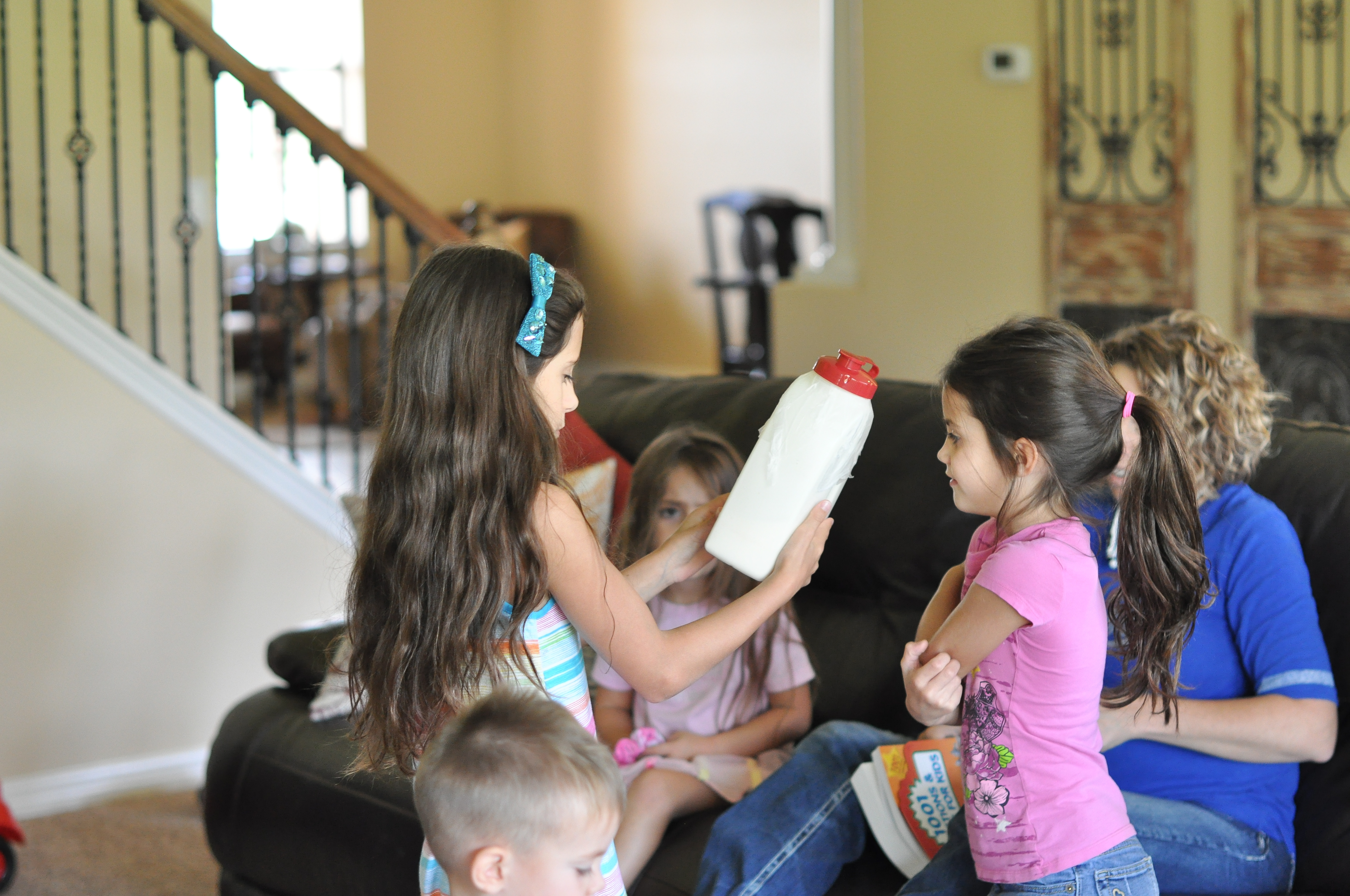 We had the pleasure of NanaDale teaching us how to make butter out of whipping cream, last week.DSC_1579 First you pour the whipping cream into a shakeable container…then you SHAKE (about 15 to 20 minutes).DSC_1570