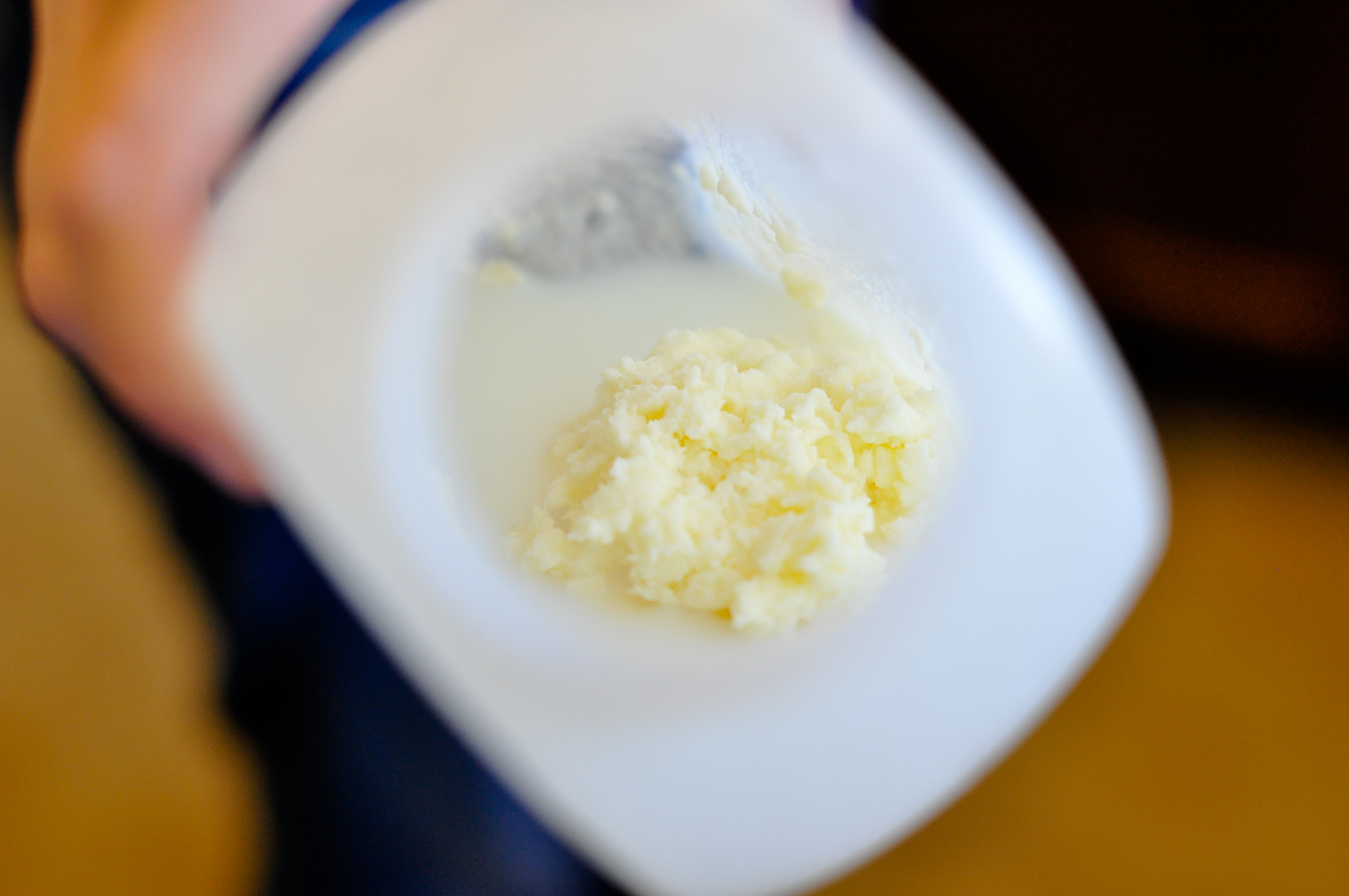 Once the liquid becomes a cream, we banged/hit the container against the ground, knocking the milk away from the butter (you can also use a cheese cloth).DSC_1585
