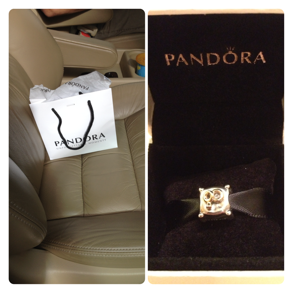 Finally around 7am the girls were back in bed sound asleep when Josiah decided to wake up. It was May 31st, our 10 year anniversary and it was also our big girl Alayna’s birthday! Again we were stuck. What should we do? Two of our four kids were sick. Were they sick from the food the night before or was it something else? Victoria started doing better, so I figured it was something they ate. If we cancelled the reservation we would still get charged because of their cancellation policy! Alayna put on her birthday girl shirt and we were off to 1900 Park Fare at the Grand Floridian. As soon as I opened the car door I noticed a white Pandora bag sitting in my seat. My hubby had a special anniversary present waiting for me. I couldn’t believe it! It’s very hard to surprise me because I’m always into everything! But he did it!