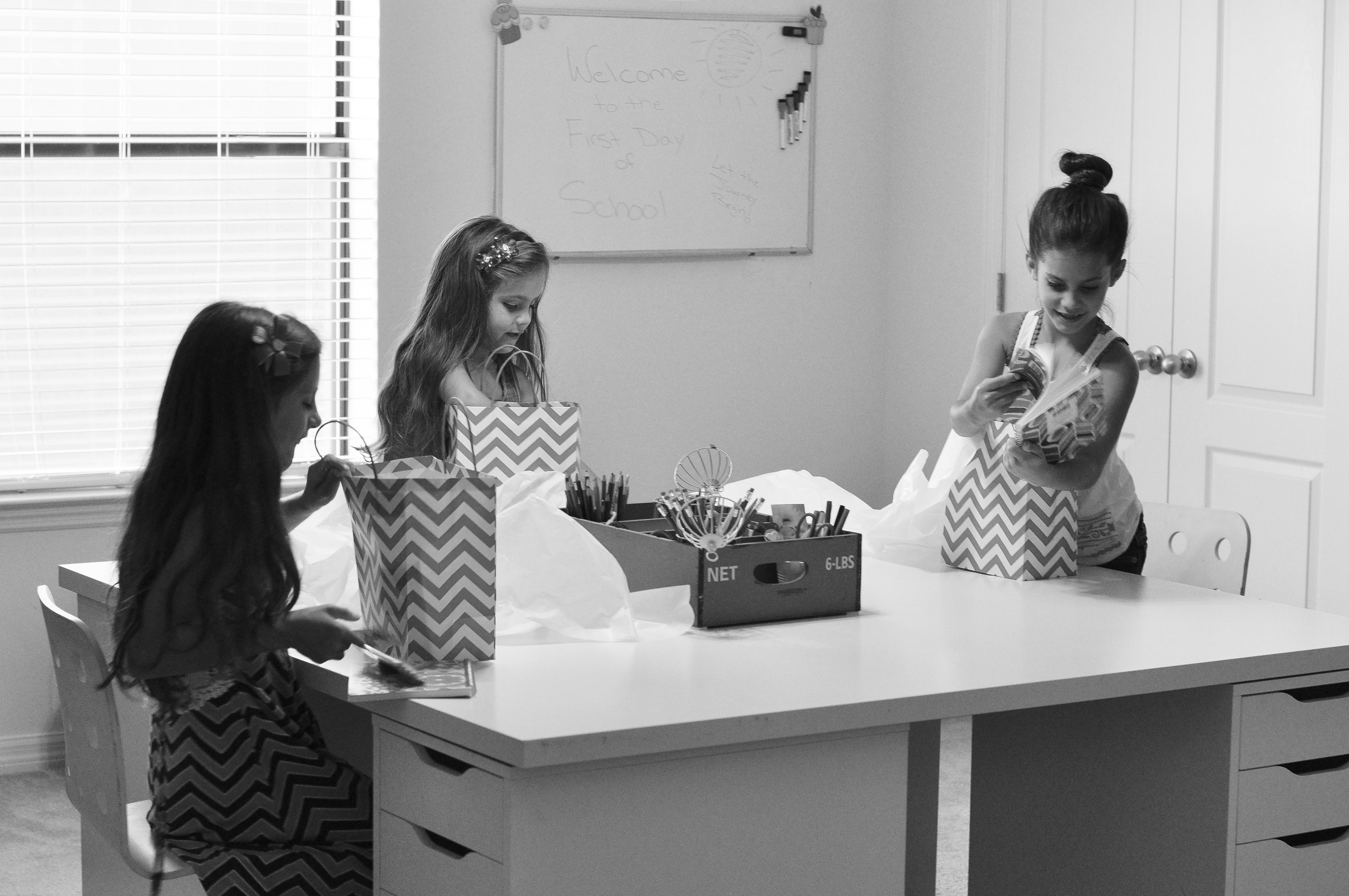 1st Day of school Four weeks off and we our back at it. Yesterday was our first day of school and it went great! I had individual schedules laid out for each of the girls which helped the day run smoothly. I’m very optimistic about this school year and I am very excited about having all three girls together for the first year.