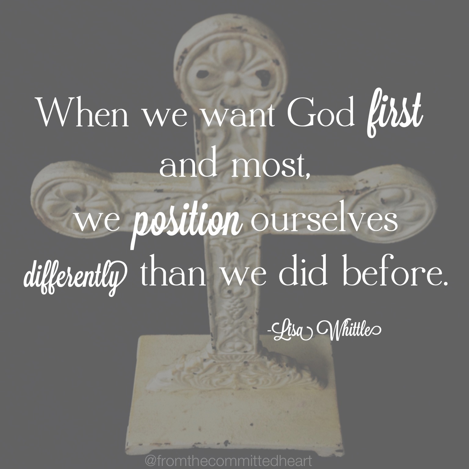 20140824-192443.jpg“When we want God first and most, we position ourselves differently than we did before.” -Lisa Whittle